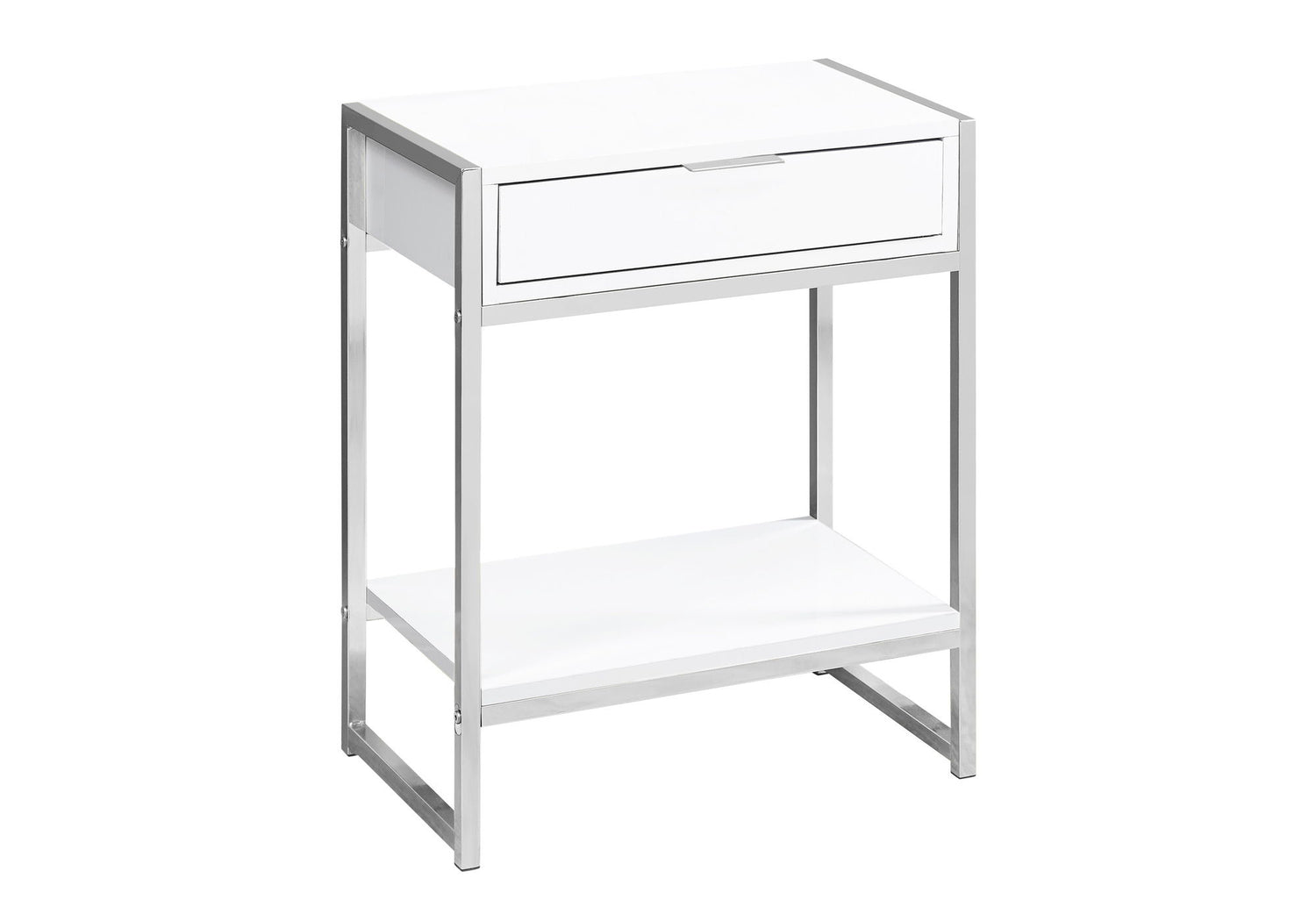 Accent Side Table, Storage Drawer, Glossy Modern - White