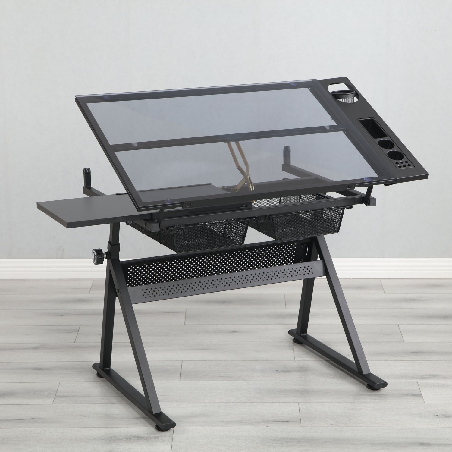 Adjustable Tempered Glass Drafting Printing Table With Chair - Black is backordered and will ship as soon as it is back in stock.