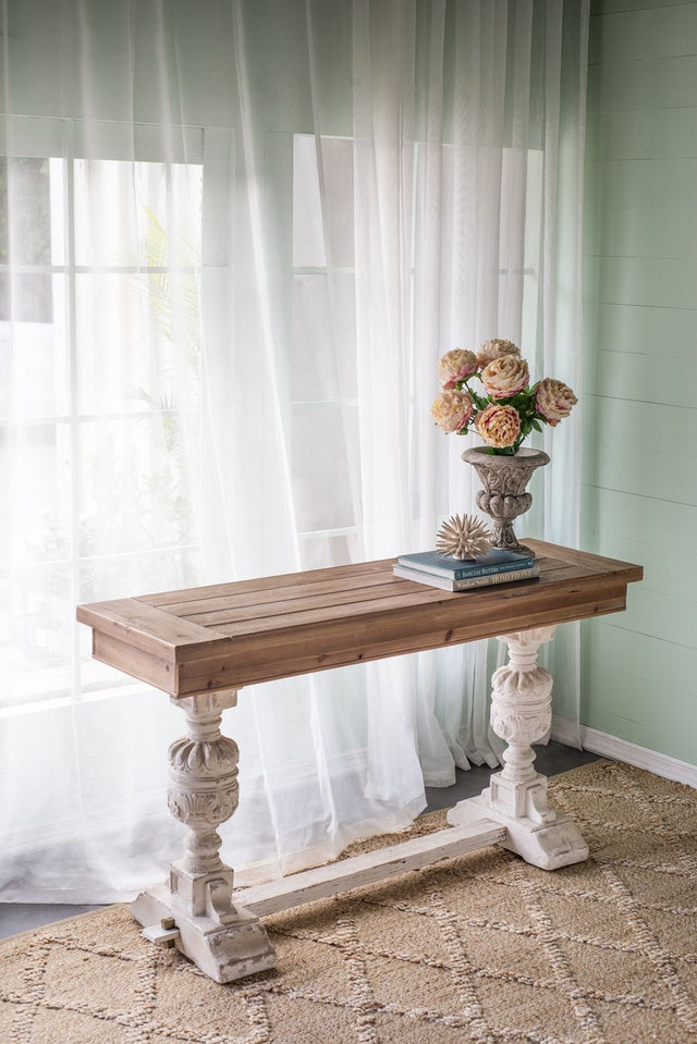 - Warm Aesthetic: Naturally-finished fir wood combined with a worn whitewashed finish gives this piece the warm feel of a treasured heirloom.