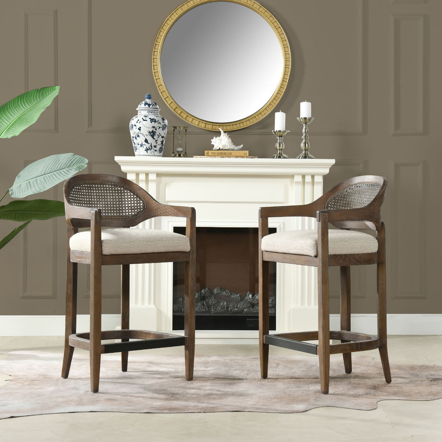 Americana - Mid-Century Modern Cane Back Bar Stool - Taupe Beige