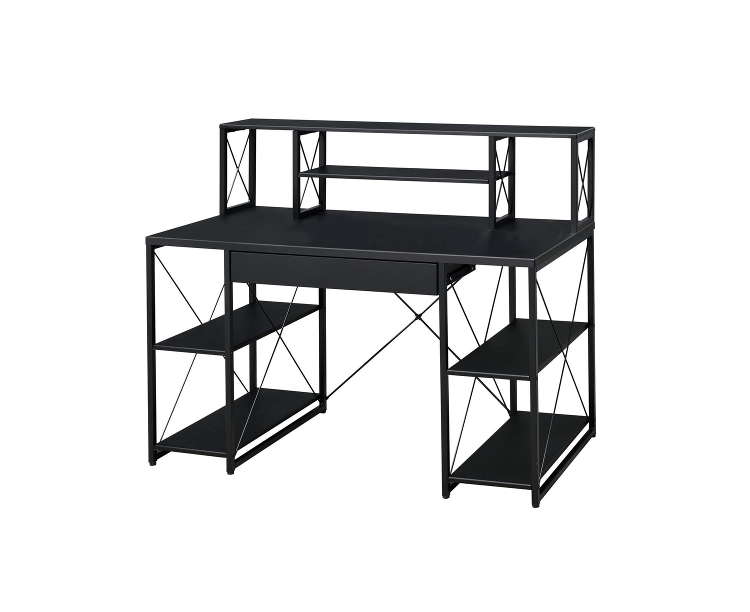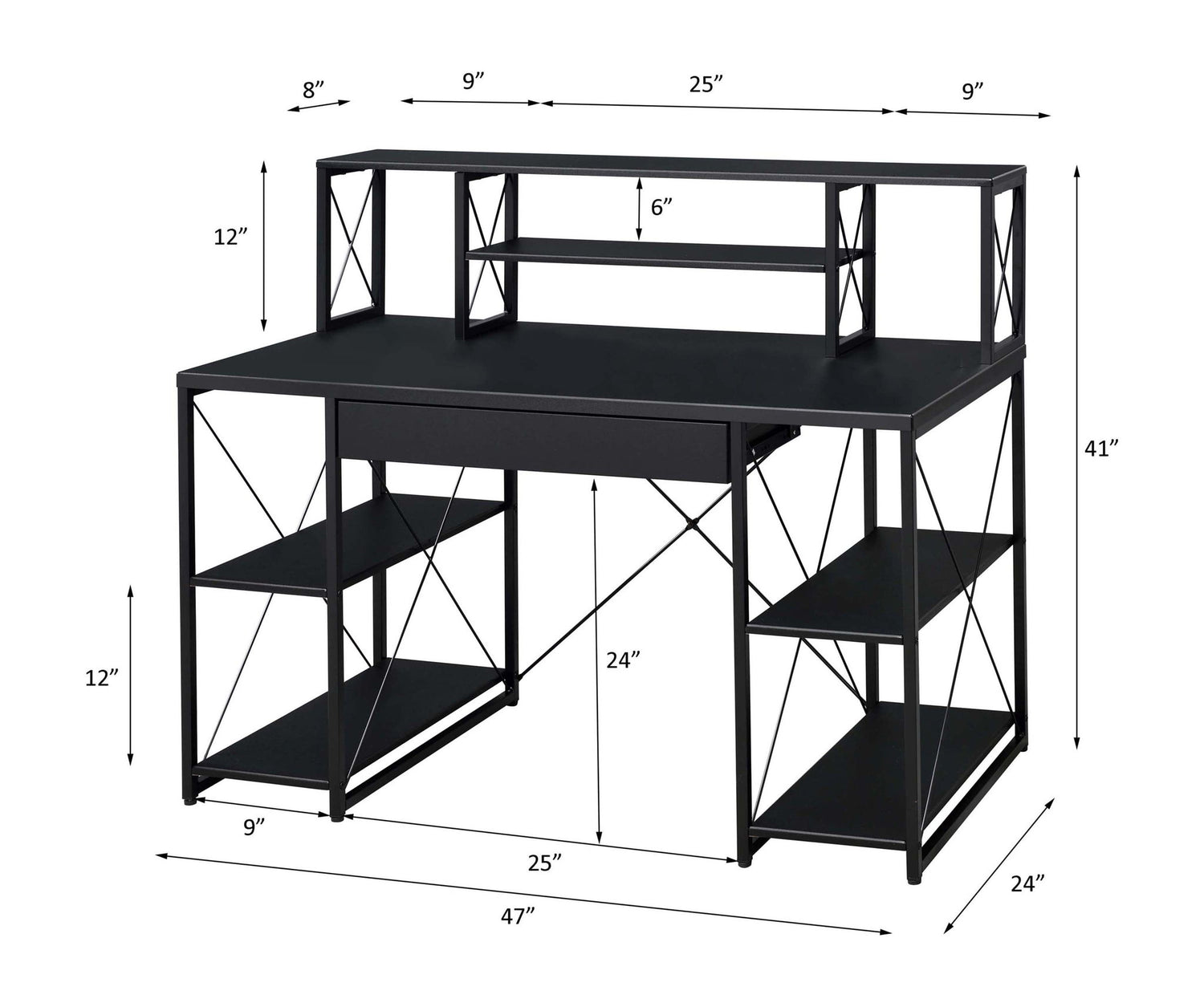 - Ample Storage: The desk features a spacious drawer with smooth side metal glides and eight open compartments, including two fixed top shelves and four fixed base shelves, providing ample storage for organization.