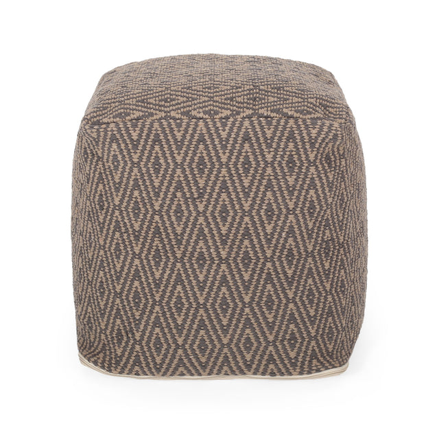 Amuleto - Hand Loomed Cotton Pouf - Dark Gray / Brown