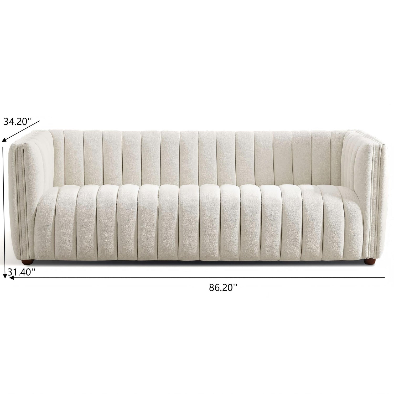 April - Mid-Century Modern Luxury Tight Back Boucle Couch - Ivory / Light Beige / White