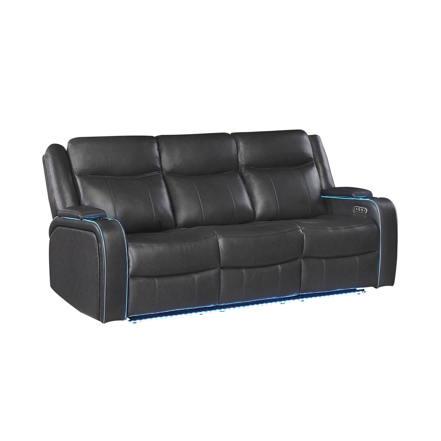 Blanca - Power Reclining Sofa With LED Lights And Power Headrest Frame - Charcoal