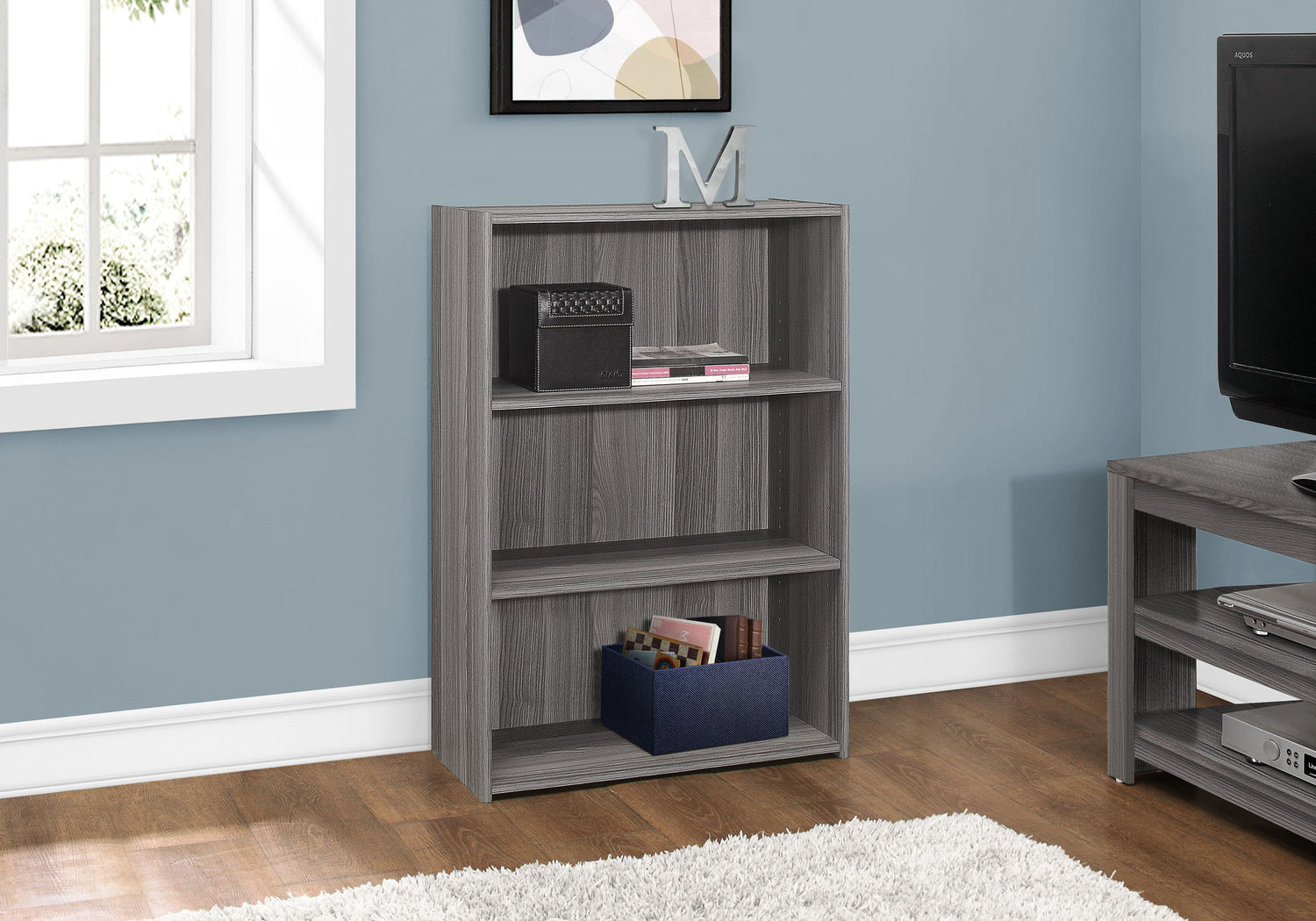 Bookshelf, Bookcase, 4 Tier, For Office, Transitional - Gray