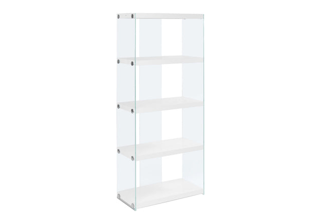 Bookshelf, Bookcase, Etagere, 5 Tier, Glossy Clear Tempered Glass - White