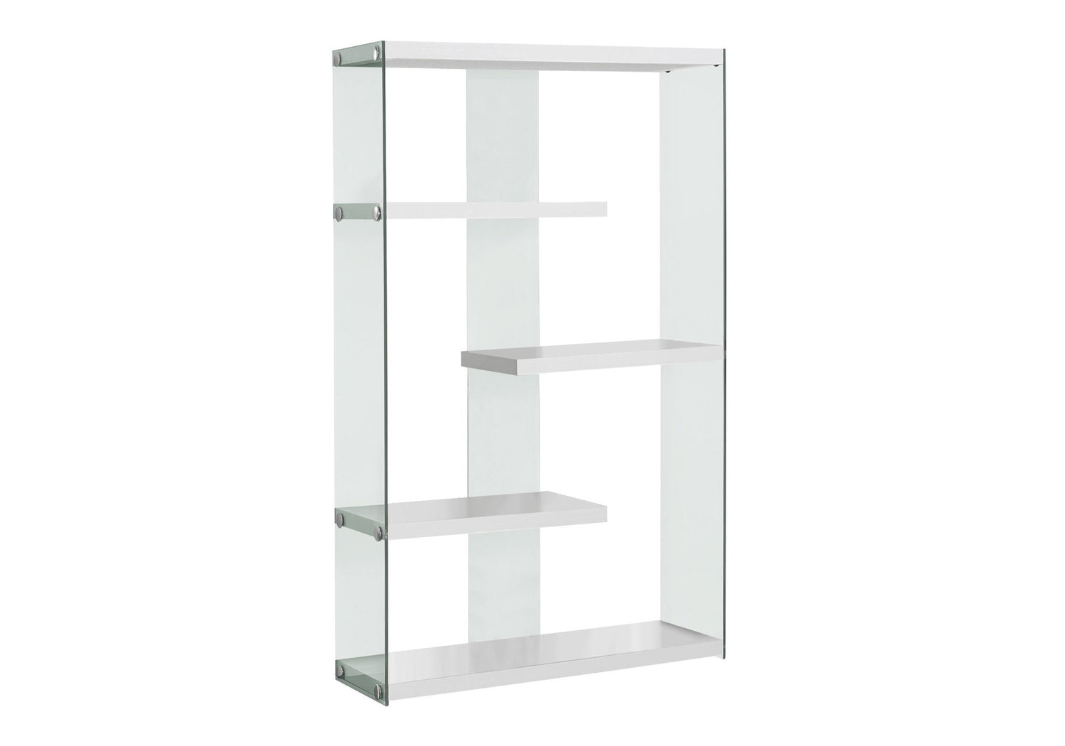 - Sturdy Construction: Built with MDF and includes 4 fixed zig-zag shelves supported by clear tempered glass sides and back, ensuring durability and stability.