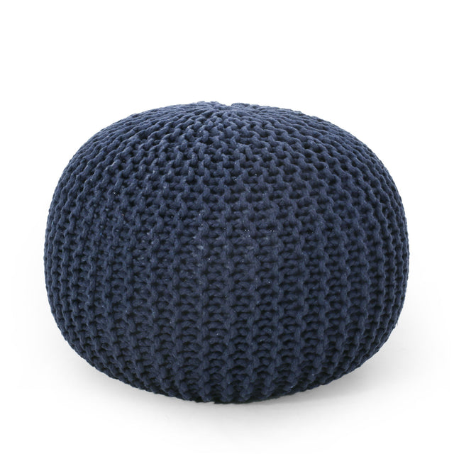 Bordeaux - Knitted Cotton Round Pouf Ottoman And Floor Cushion - Navy Blue