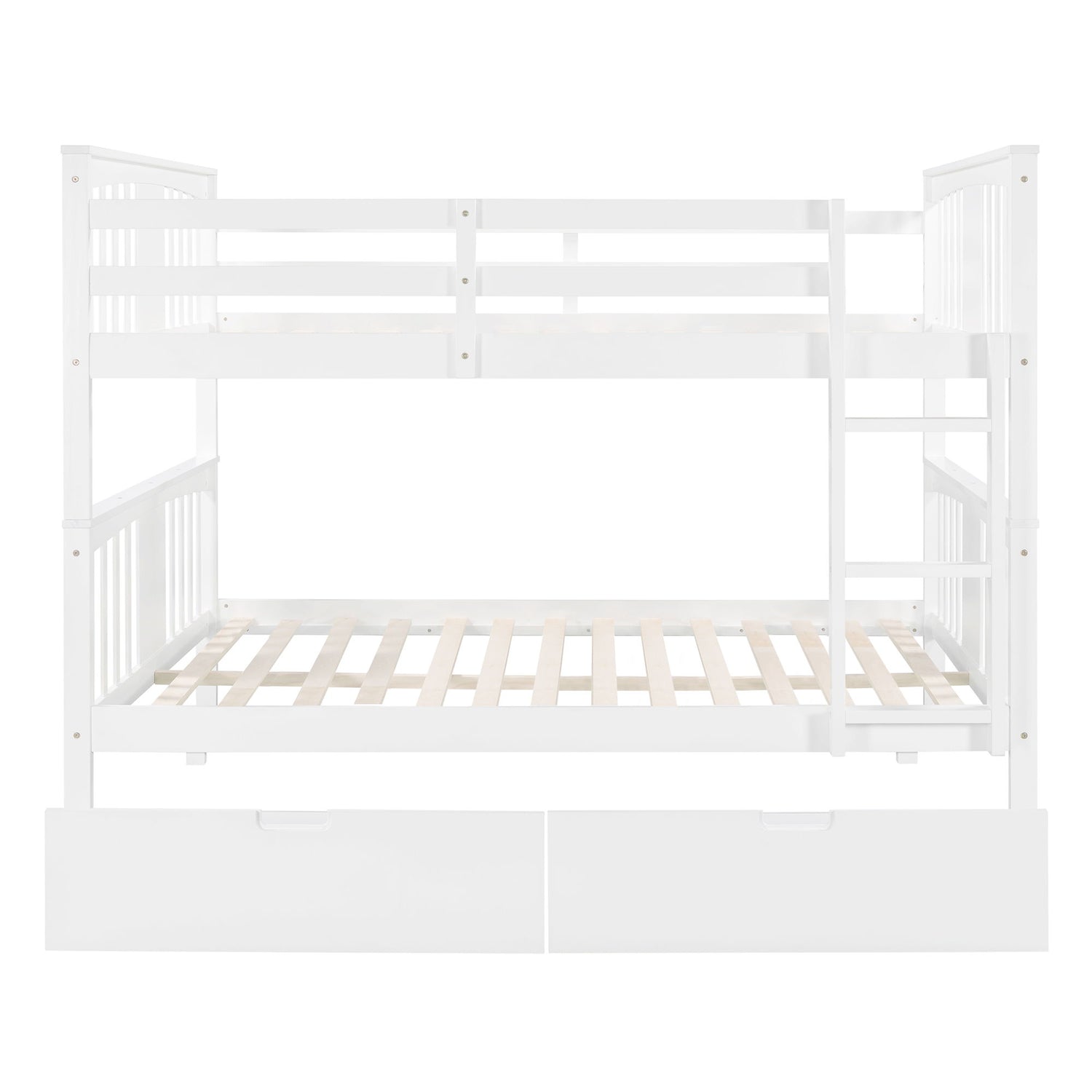 Full Over Full Bunk Bed With Drawers And Ladder For Bedroom - White