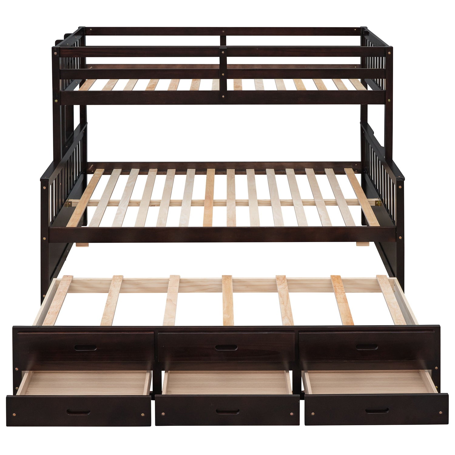Twin Over Full Bunk Bed With Twin Size Trundle, With Drawers For Bedroom - Espresso