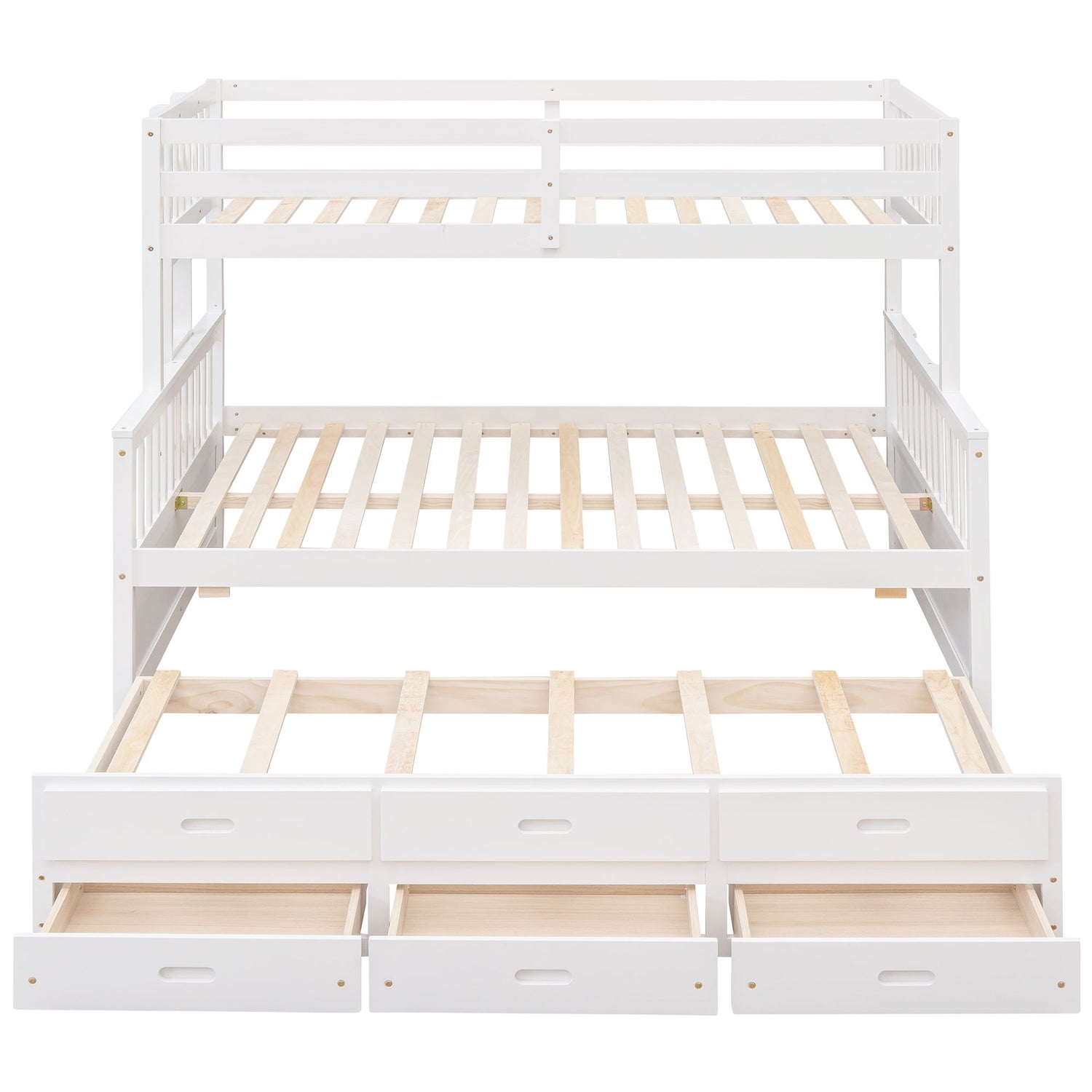 Twin Over Full Bunk Bed With Twin Size Trundle, With Drawers For Bedroom - White