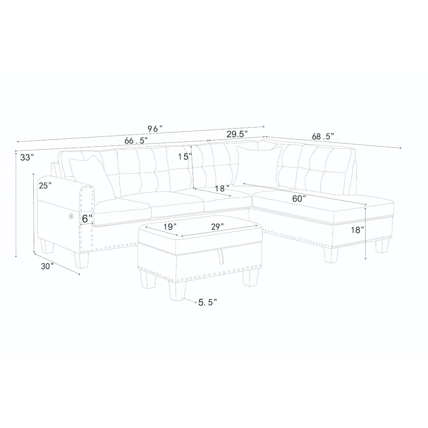 Camden - Power Sectional Sofa With Storage Ottoman And Built In Charging Ports - Gray