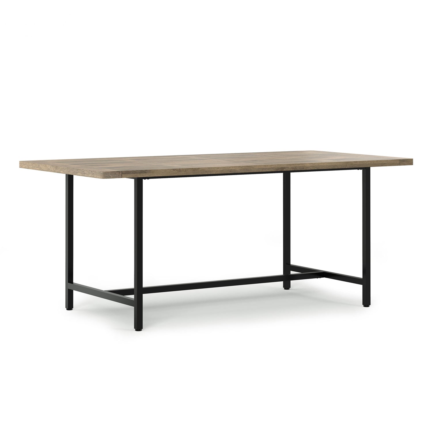 - Made with sustainably sourced solid mango wood, the thick tabletop is constructed with tongue-and-groove panels that create a framed, grid-like pattern.