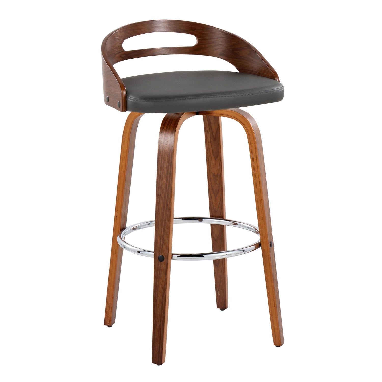 Cassis - Mid-Century Modern Fixed Height Barstool With Swivel With Round Footrest (Set of 2) - Walnut / Gray