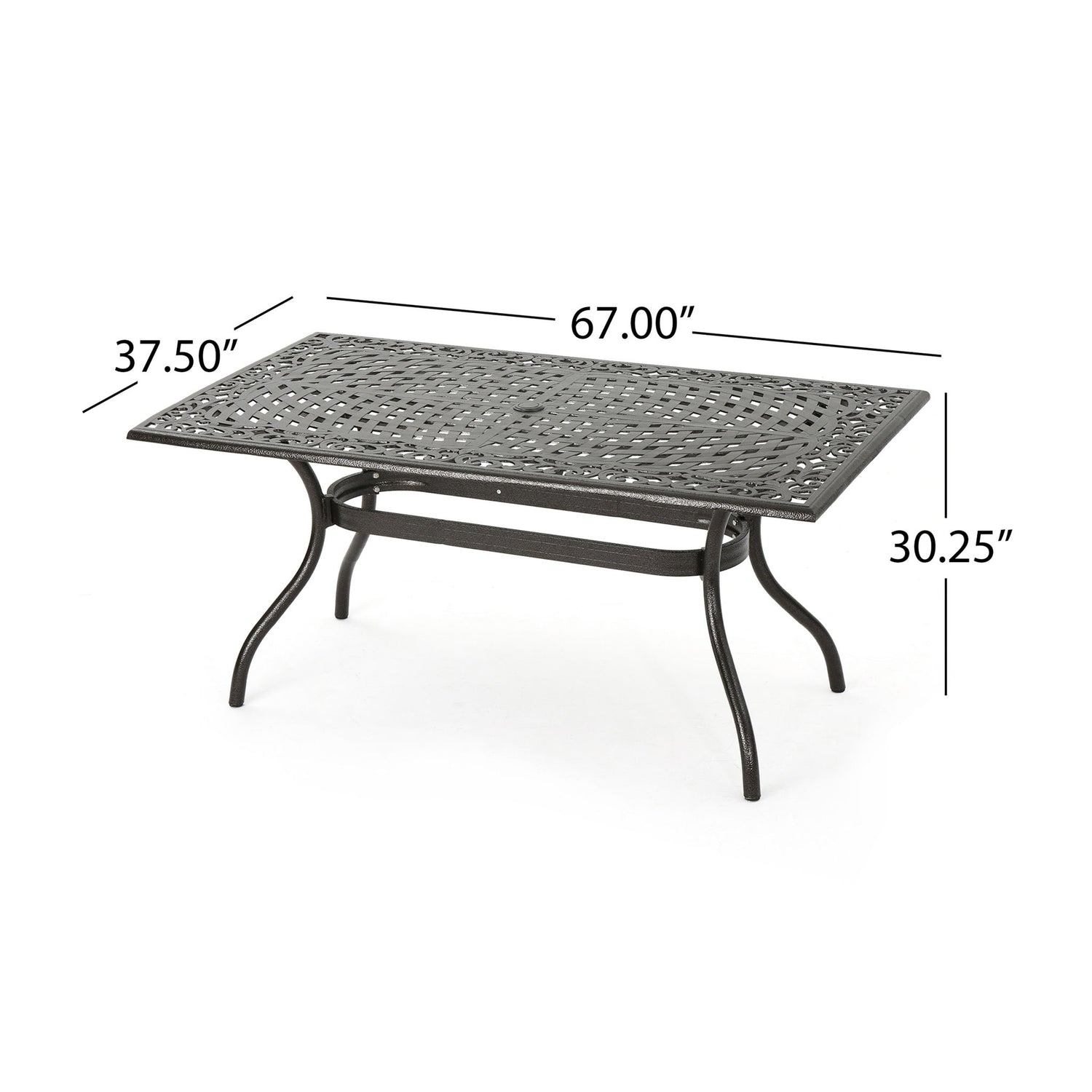 Celestine - Outdoor Cast Aluminum Dining Table With Floral Lattice Design And Umbrella Holder