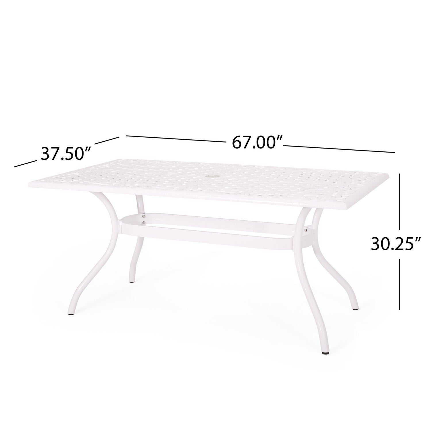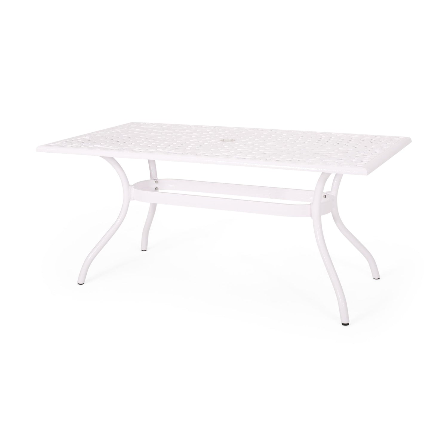 Celestine - Outdoor Cast Aluminum Dining Table With Floral Lattice Design And Umbrella Holder - White
