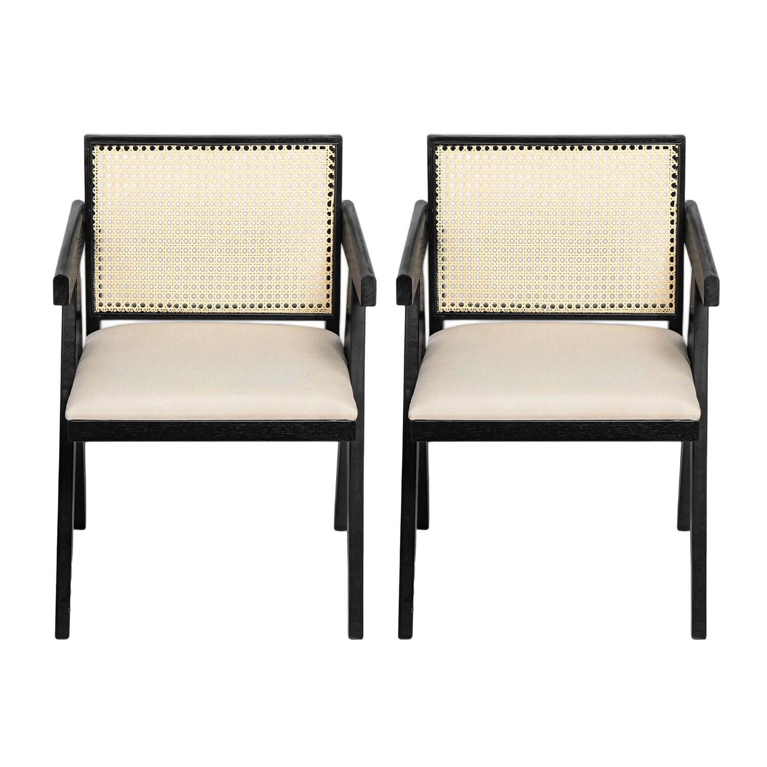 Chandigarh Farmhouse Style Cane Upholstered Dining Chairs (Set of 2)