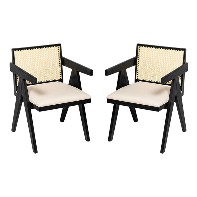 Chandigarh - Farmhouse Style Cane Upholstered Dining Chairs (Set of 2) - Black / Natural