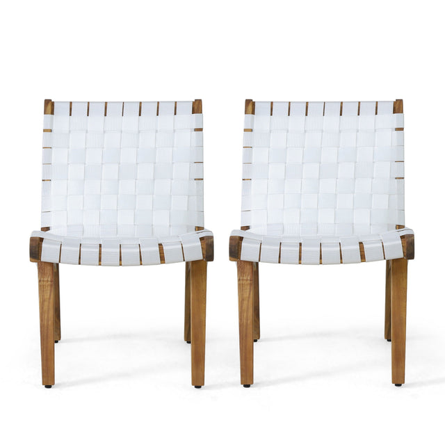 - Complete Set: Includes two lounge chairs with rope seating and acacia wood frames.