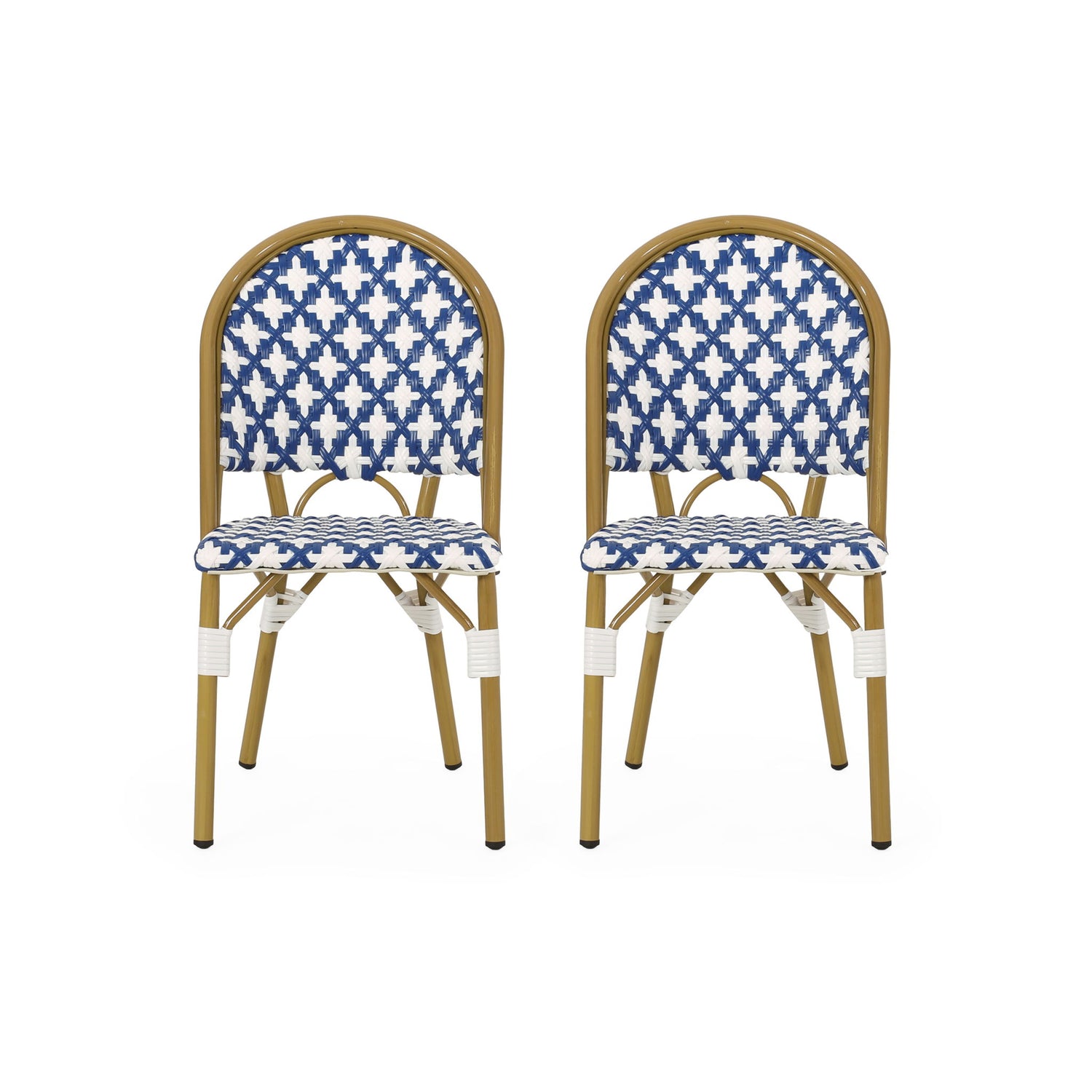 Elegant French Bistro Chair Set With Durable Aluminum Frame And Polyethylene Rattan - White / Navy