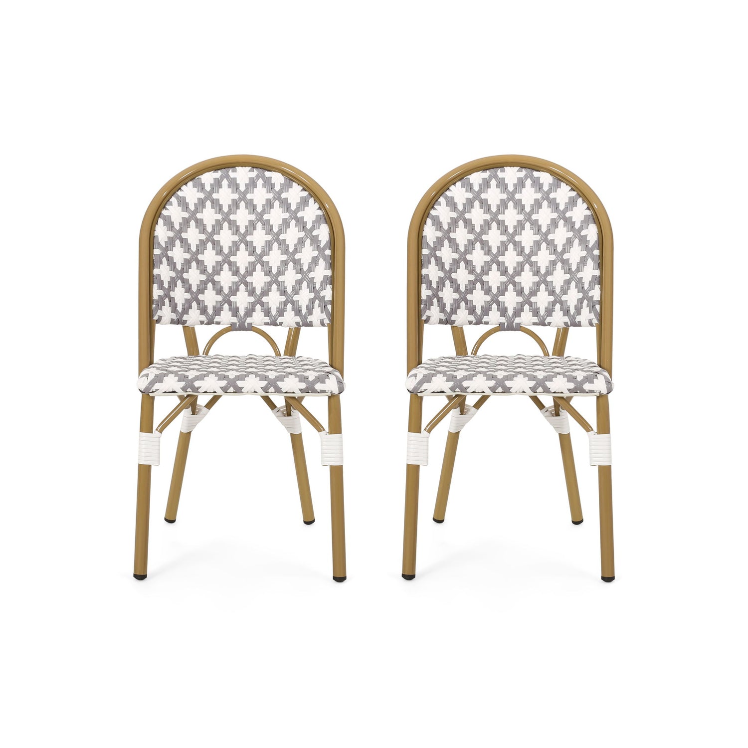 Outdoor Rattan And Aluminum French Bistro Chairs Set Bamboo - White / Gray