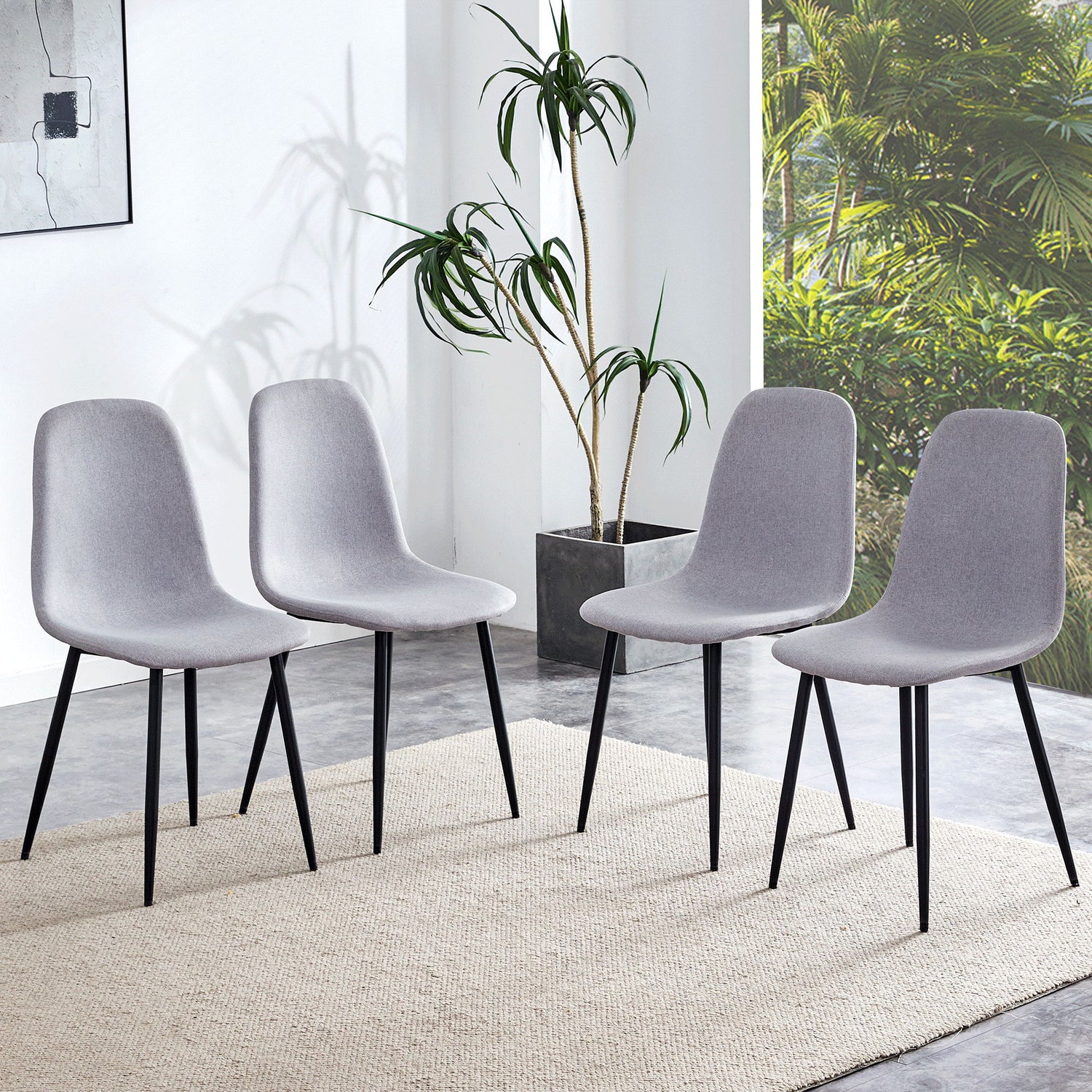 (Set of 4) Fabric Back And Metal Combined Spoon Chairs Perfectly Matching Minimalist And Scandinavian Style Homes - Gray / Black