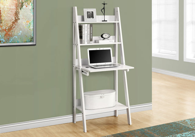- Durable Design: This 61-inch high leaning ladder style computer desk features a wood-look laminate finish on all sides, providing a sturdy and stylish addition to any room. It securely attaches to the wall with included hardware for added safety.