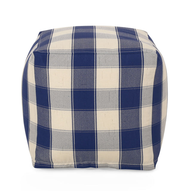 Connor - Checkered Square Pouf Ottoman And Floor Cushion - Ivory / Navy