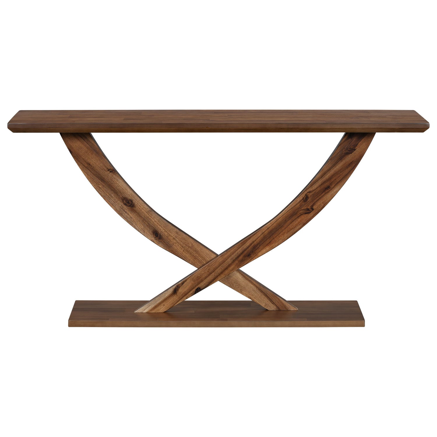 Console Table With Cross Leg Base And Reinforced Support Plate - Brown