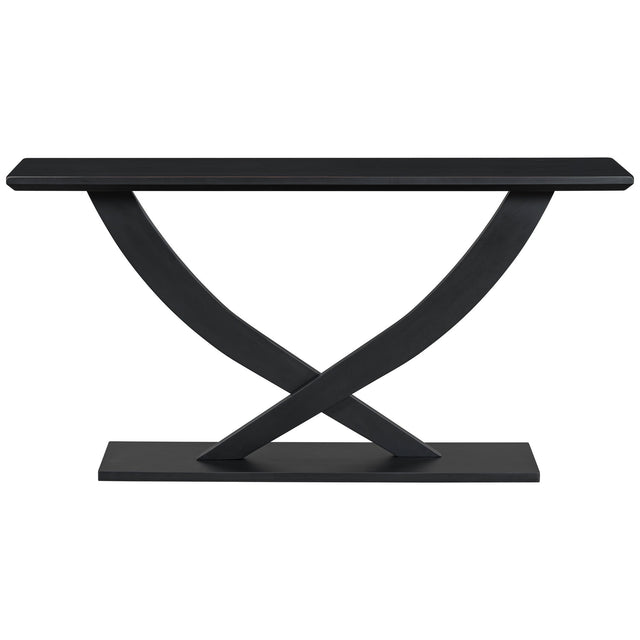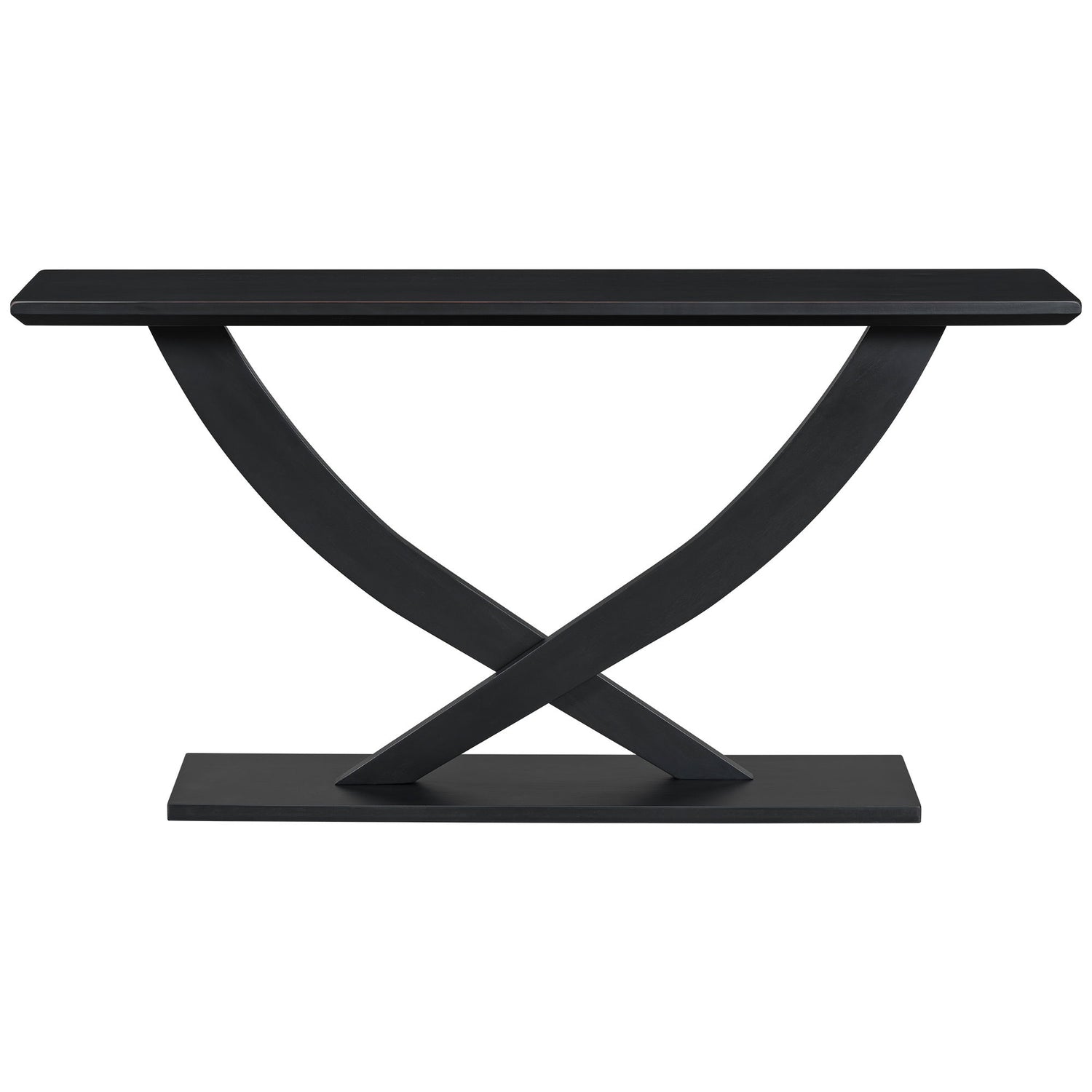 Console Table With Cross Leg Base And Reinforced Support Plate - Black