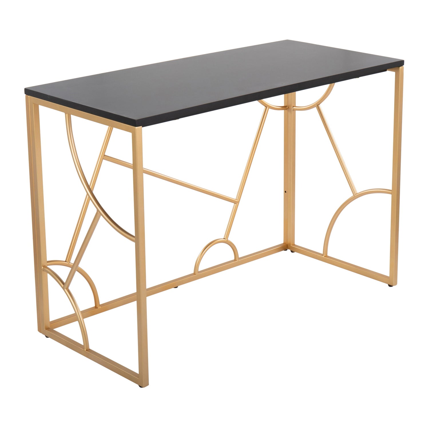 - Material and Finish: The desk features a wood top, complemented by a unique gold metal frame, providing a contemporary and sophisticated look.