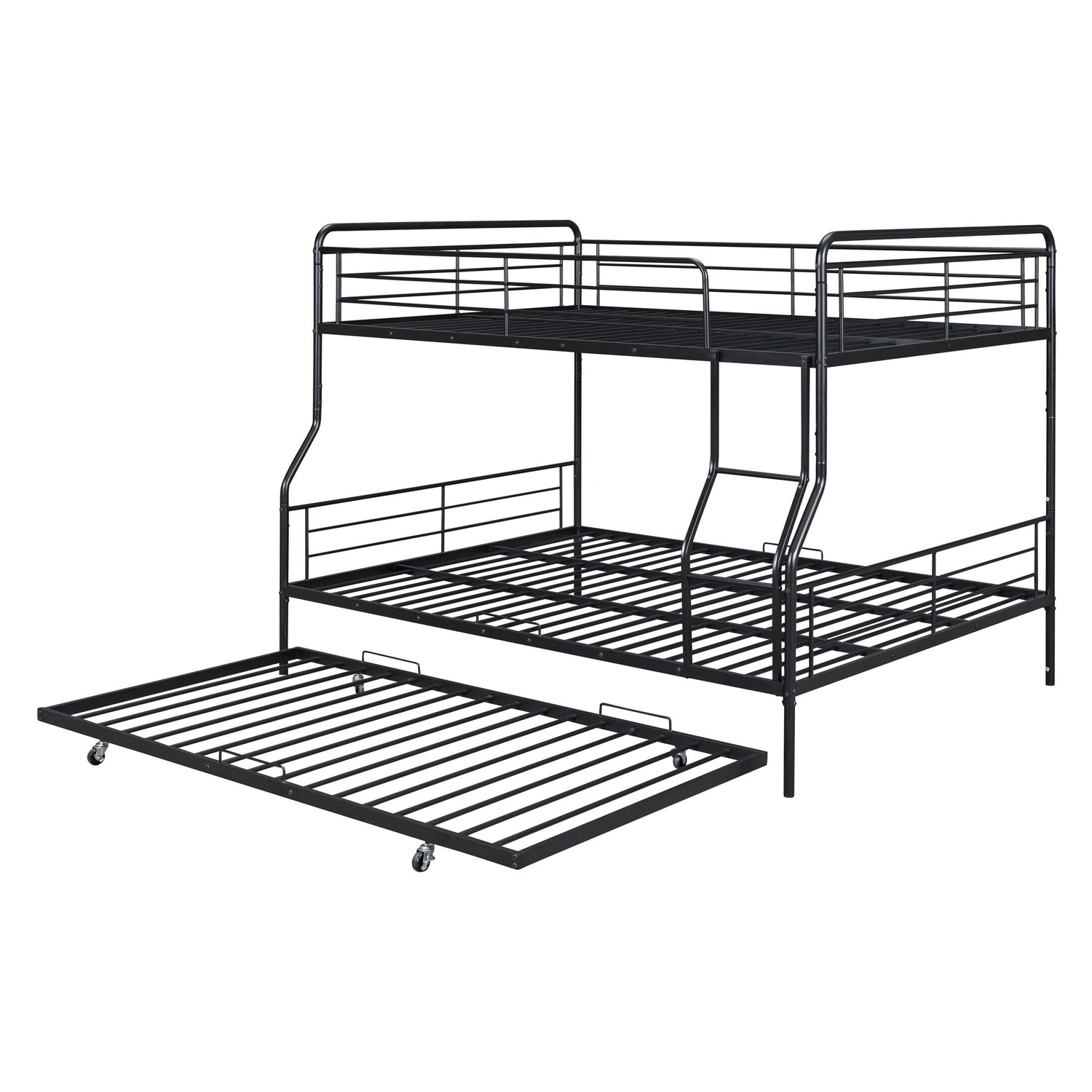 Full Long Over Queen Bunk Bed With Twin Size Trundle - Black