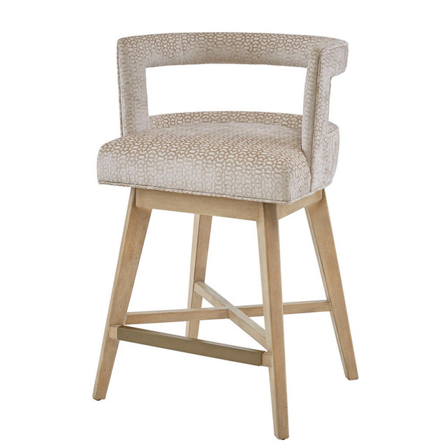 Contemporary Design Swivel Counter Stool With Low Back Support Polyester And Solid Wood - Cream
