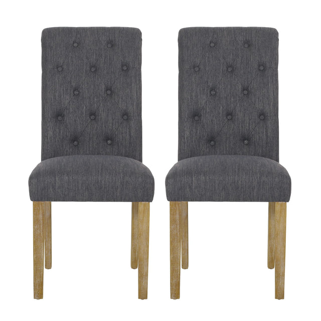 Contemporary Dining Chair (Set of 2) With Button Tufted Design - Charcoal