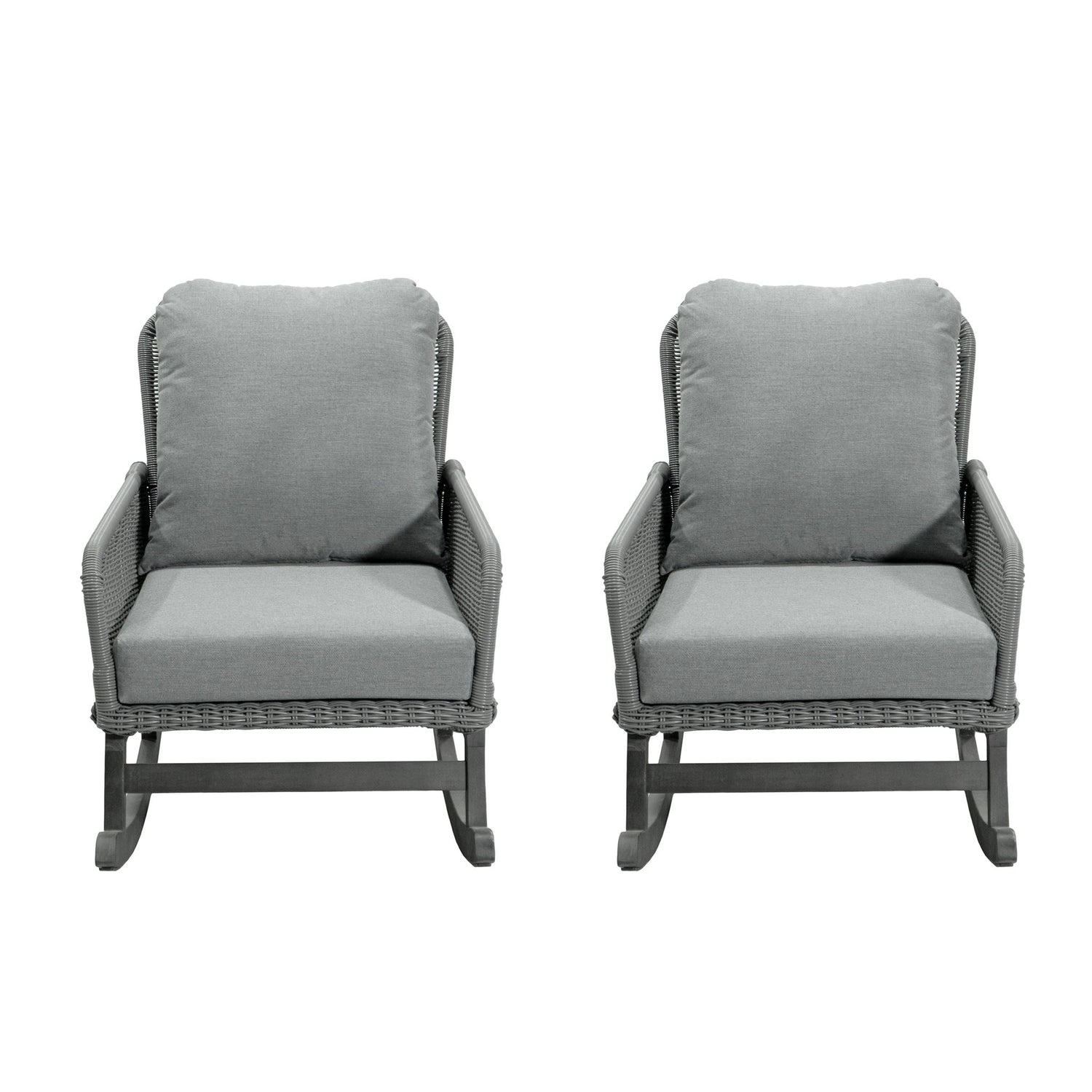 Contemporary Minimalist Wicker Rocking Chair & Soft Polyester Cushions And Durable Wooden Frame (Set of 2) - Gray