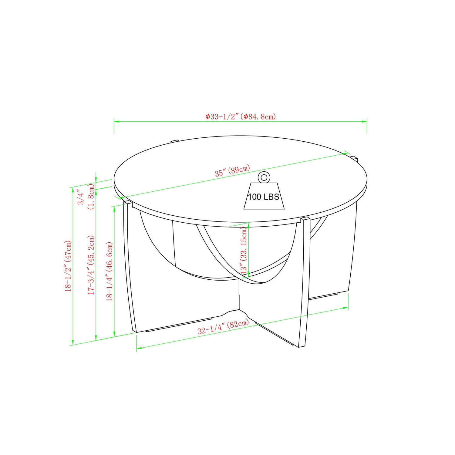 33.5"W x 35.0"D x 18.5"H - 29.0 lb