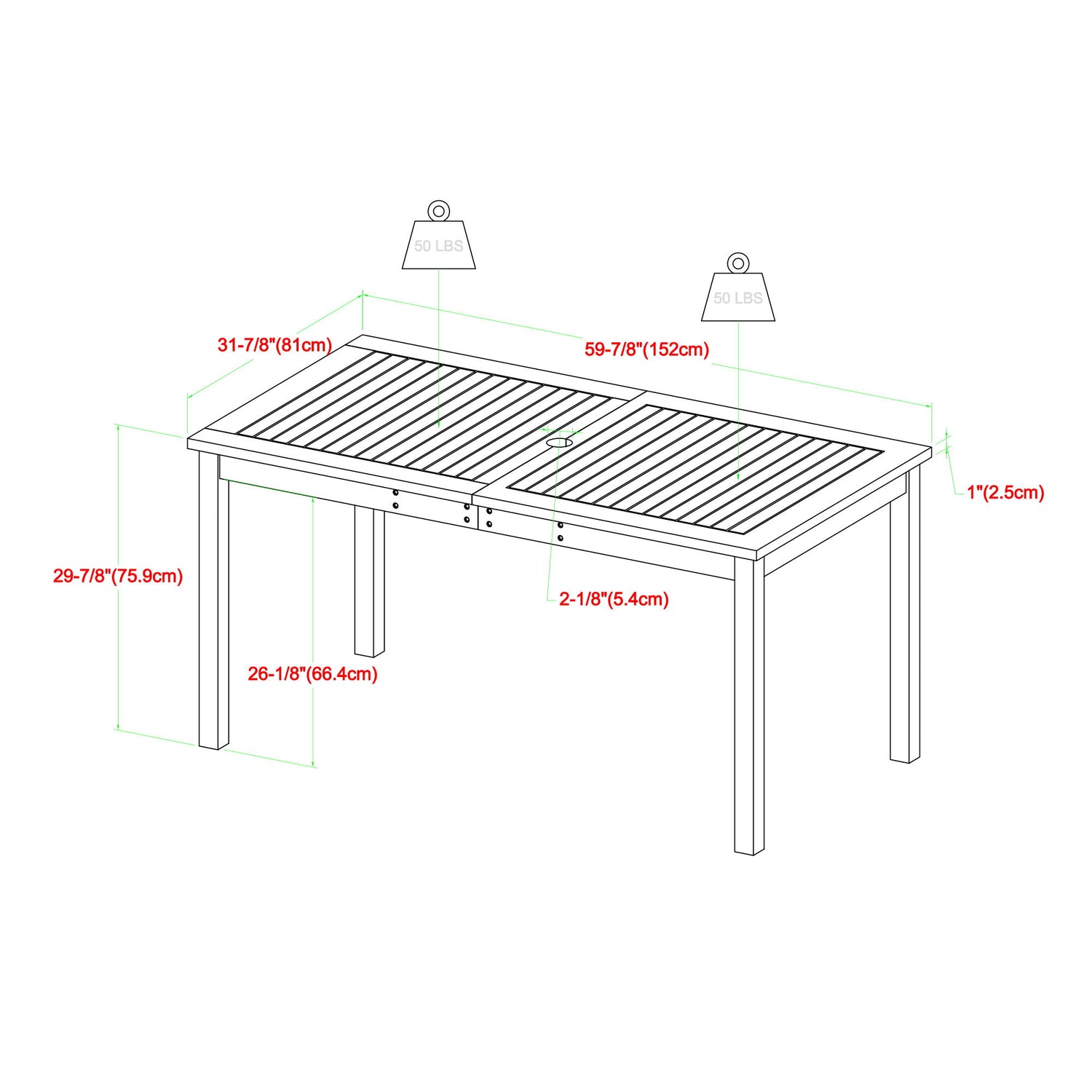 Contemporary Slat Top Acacia Wood Outdoor Dining Table