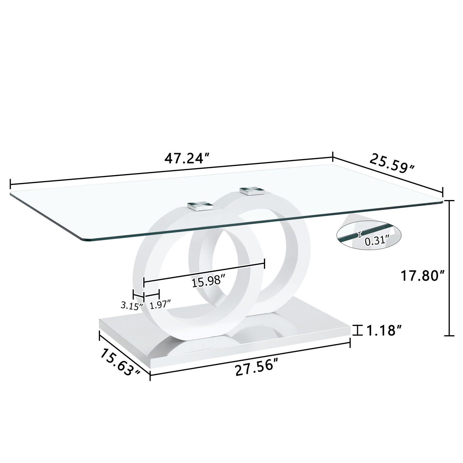 Contemporary Style Glass Top Coffee Table With White Base Suitable For Living Rooms And Lounge Areas - White