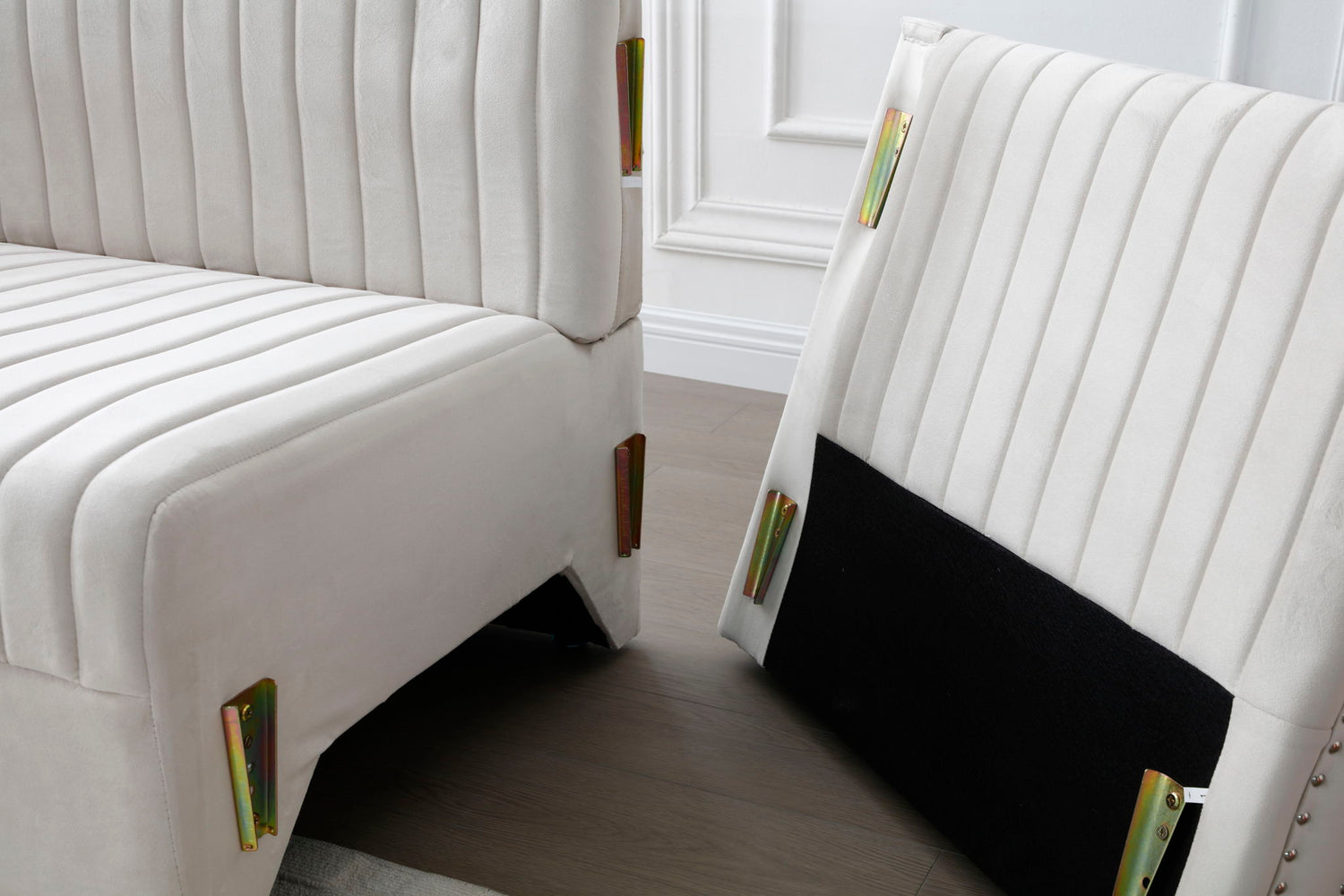 Contemporary Vertical Channel Tufted Velvet Sectional Sofa For Living Room With 4 Pillows