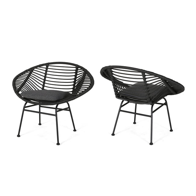 Cordella - Outdoor Woven Wicker Chairs With Cushions, (Set of 2)