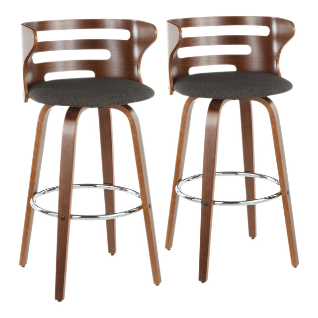 Cosini - Mid-Century Modern Barstool With Swivel (Set of 2) - Walnut / Charcoal