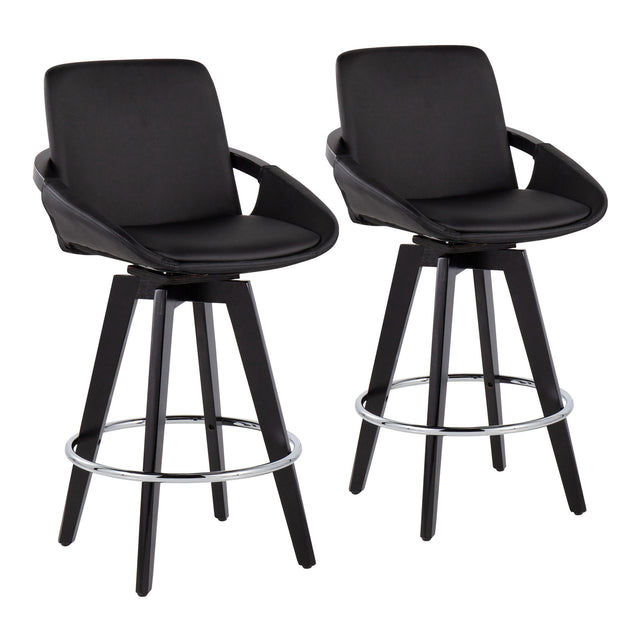 Cosmo - Contemporary Fixed Height Counter Stool With Swivel And Round Footrest (Set of 2) - Black