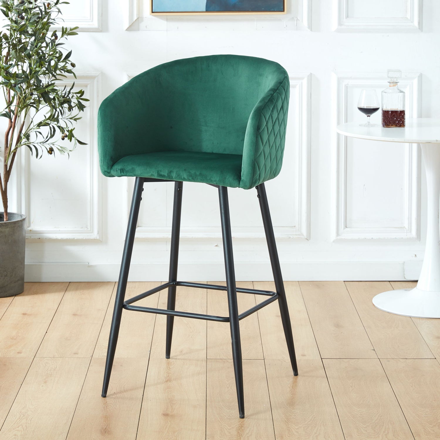 Counter Height Bar Stool, Metal Legs, Velvet Upholstered For Pub, Restaurant, Kitchen Island (Set of 2) - Black / Green