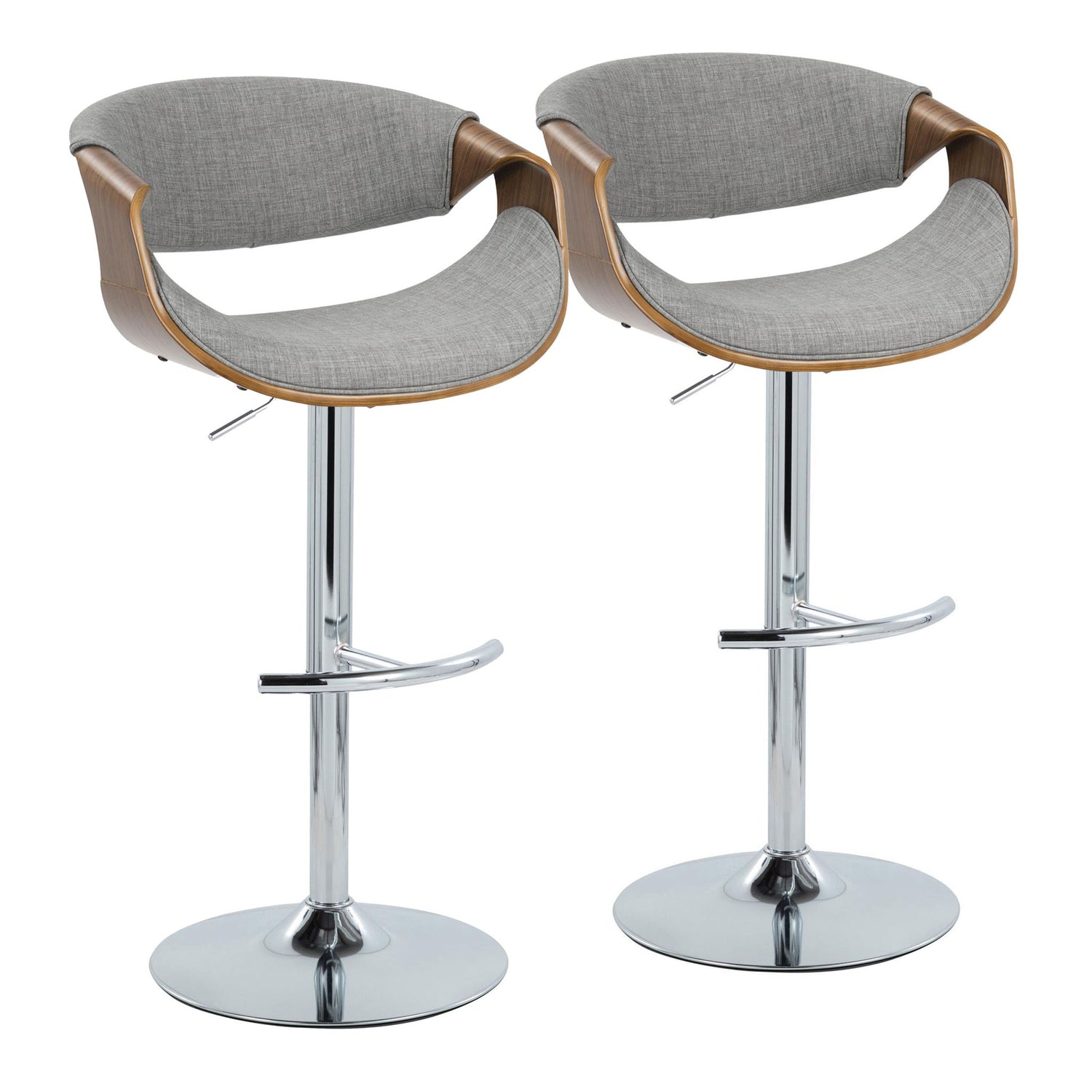 Curvo - Mid-Century Modern Adjustable Barstool With Swivel With Rounded T Footrest (Set of 2) - Chrome / Walnut / Charcoal