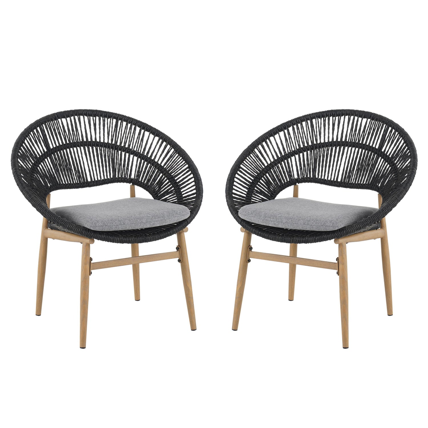 Cyril - Outdoor Wicker Papasan Style Dining Chair (Set of 2) - Dark Gray / Teak