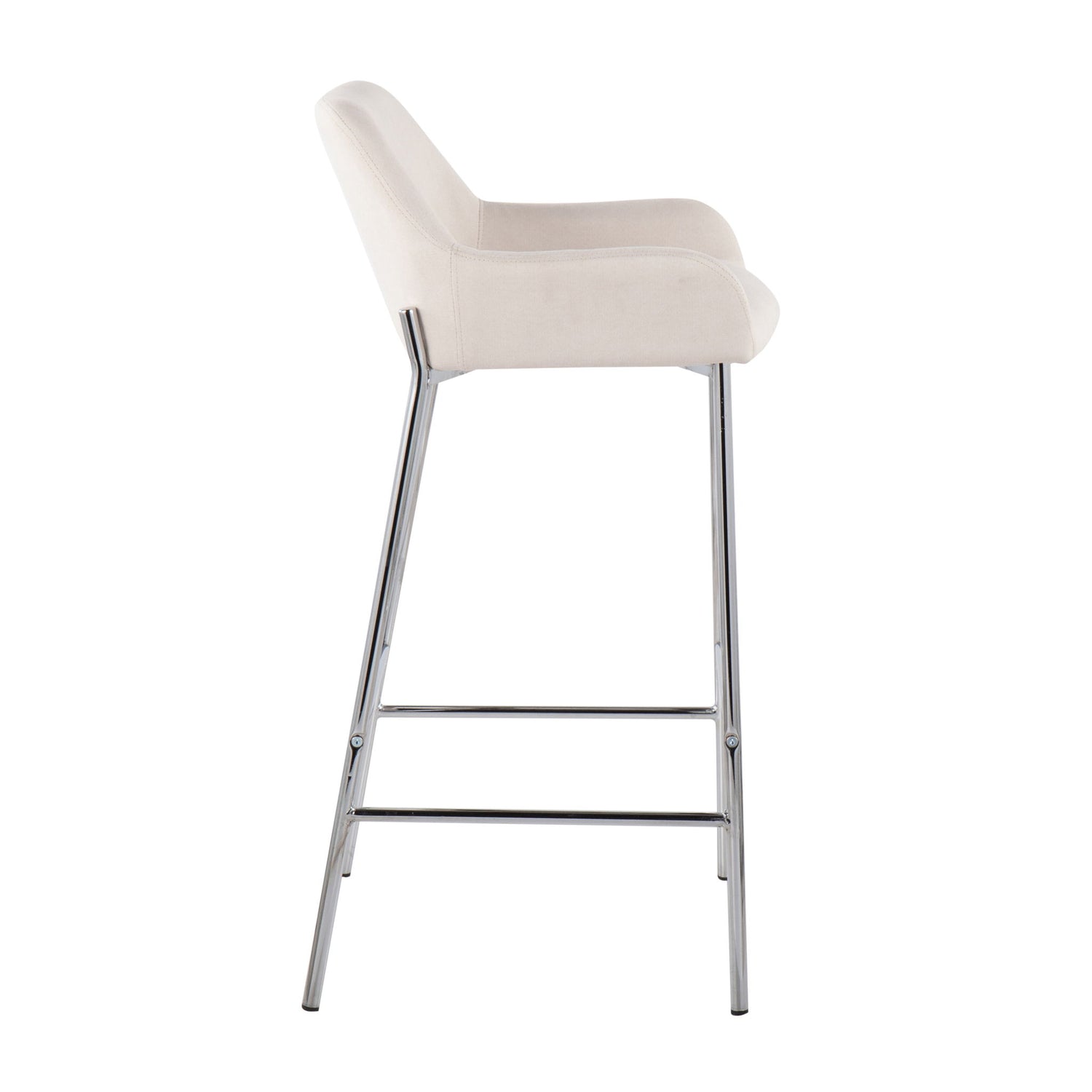 Daniella - Contemporary Fixed Height Bar Stool (Set of 2) - Chrome / Cream