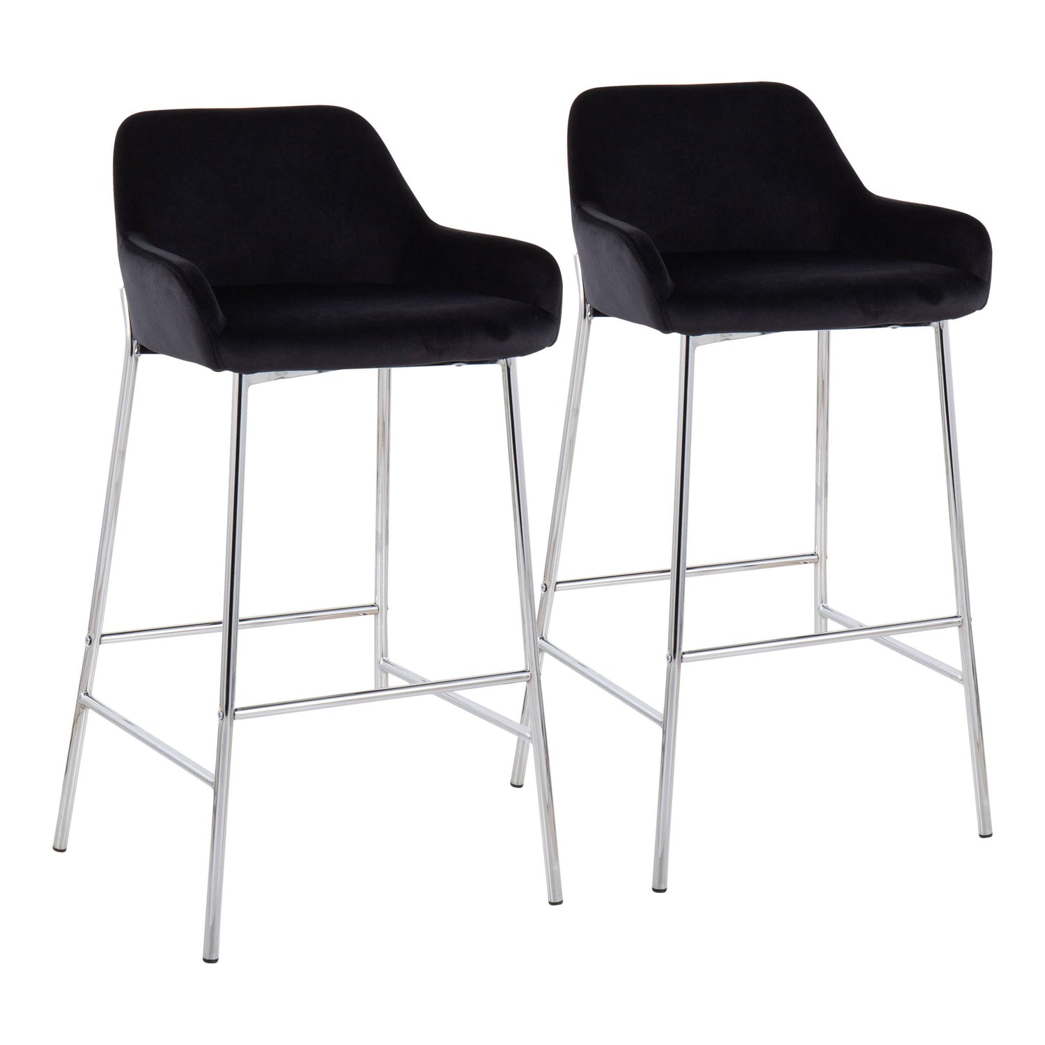 Daniella - Contemporary Fixed Height Bar Stool (Set of 2) - Chrome / Black