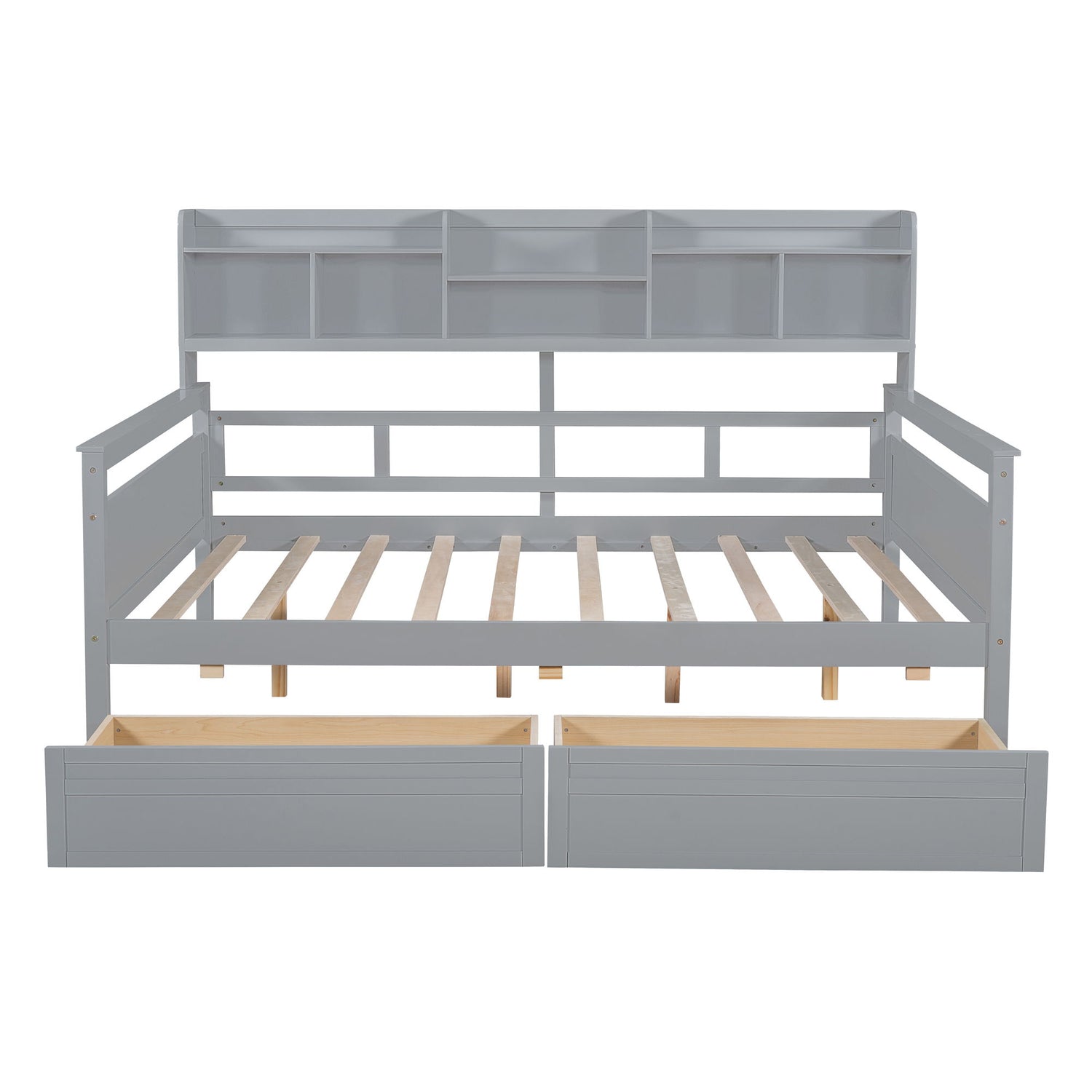 Full Size Daybed, Slat Support, With Bedside Shelf And 2 Drawers - Gray