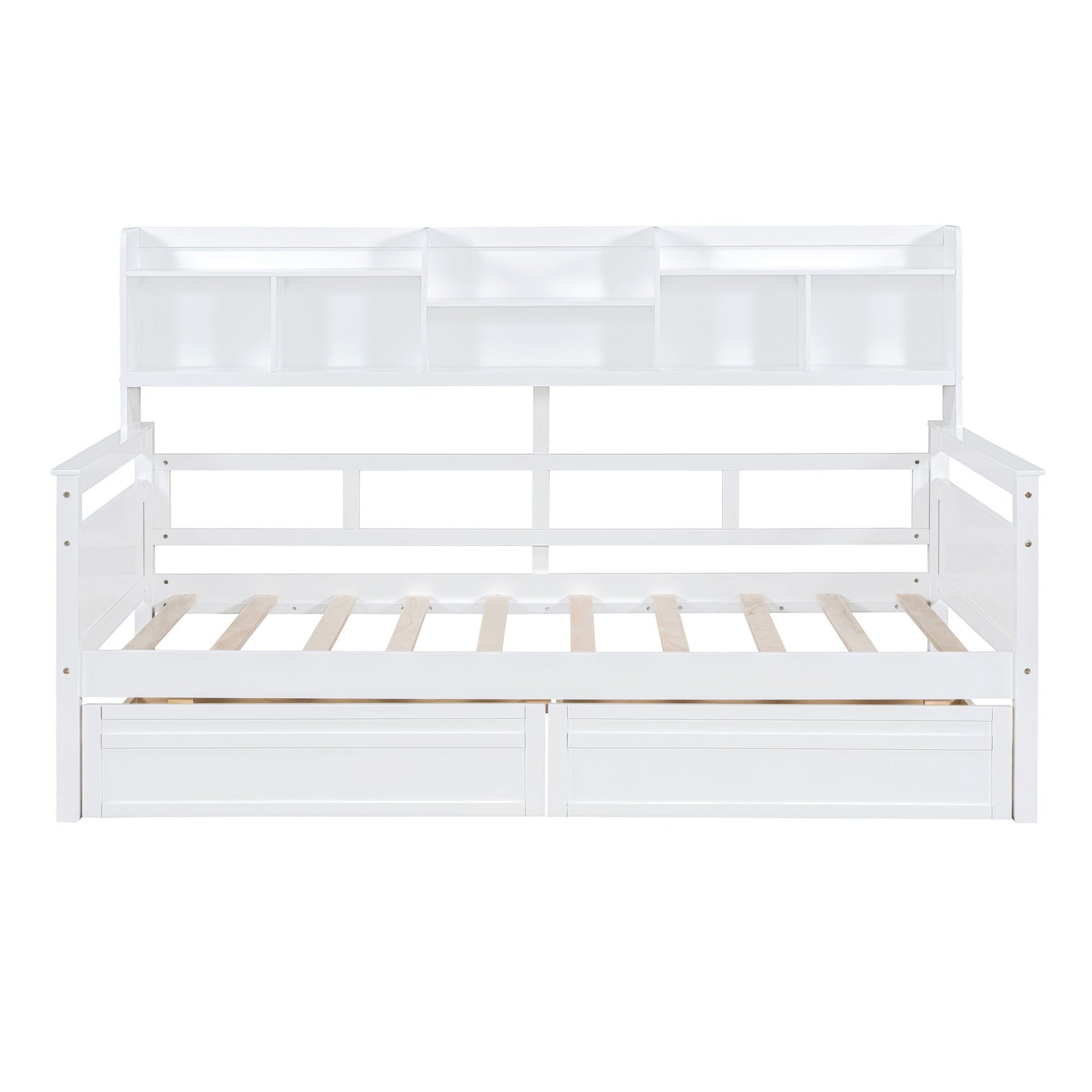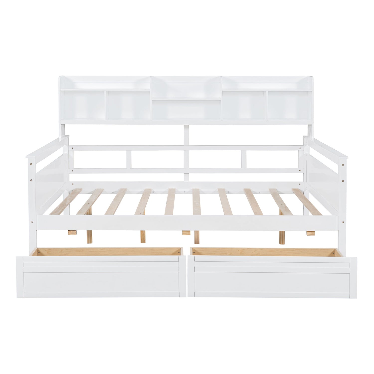 Daybed, Wood Slat Support, With Bedside Shelves And Two Drawers