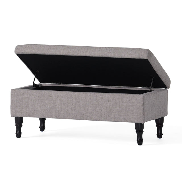 - Tufted Storage Ottoman – A luxurious tufted top and spacious storage compartment make this grey fabric ottoman perfect for living rooms, bedrooms, or offices.